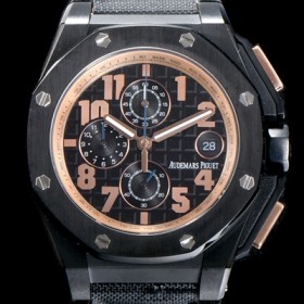 - 블랙 & 로즈골드 3D 와플 다이얼,아라비안 인덱스 - 크로노그래프(Chronograph)- 30분계,12시간계,영구초침(Small Seconds) - 3시방향 날짜창 디스플레이 퀵 체인지 가능