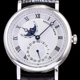 Breguet Classique Men's Watch Moonphase Silver Texture Dial Automatic Movement