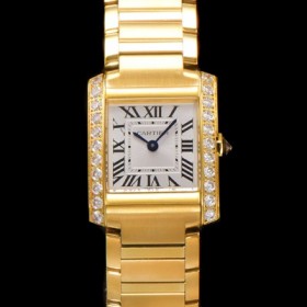 Cartier Women's Tank "Française Watch!!" Diamond Small Model Yellow Gold Quartz Movement White Dial
