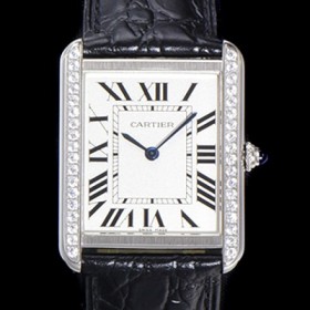 미러급 까르띠에 남성용 탱크 WJTA0015 로마 인덱스 34.8mm 화이트 다이얼 커플용 악어가죽 쿼츠 무브먼트 CAR0501 Ⅳ