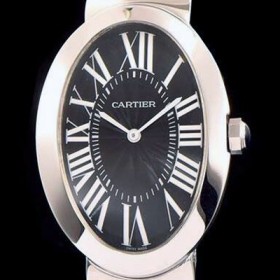 Cartier Baignoire Swiss Quartz Diamond Sliver Bezel Black Dial