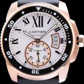 미러급 까르띠에 남성용 칼리브 드 까르띠에 로즈골드 블랙세라믹 베젤 화이트 다이얼 오토매틱 무브먼트 CAR0054 Ⅳ