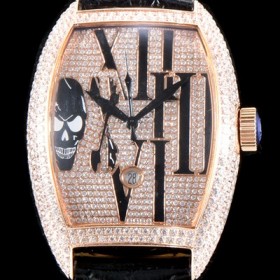 - 다이아몬드 풀 셋팅 다이얼(해골무늬) - 6시방향 날짜창 , 퀵 체인지(Quick Change)기능 - 전체 다이아 반지와 동일한 1:1수공맞물림 형식 일본산 최고급주얼셋팅 |