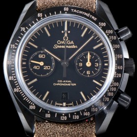 - 블랙 다이얼,수퍼 루미노바 코팅 브라운 인덱스/핸즈 - 크로노그래프 기능이 추가된 오메가 스피드마스터 문워치 - 6시방향 데이트창, 9시방향 영구초침, 3시방향 12시간계 정상작동 |