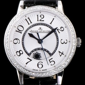 • 미러급 예거르꿀르뜨 남성용 랑데부 나잇&데이 3448110  미디엄 레이디 워치!! 문페이즈 화이트 기요셰 다이얼 오토매틱 무브먼트 JAG0451 Ⅳ