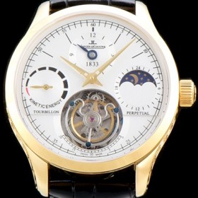 미러급 예거르쿨트르 남성용 마스터 그랑 트래디션 5043480 1833퍼페추얼 18K 옐로우골드 케이스 화이트 다이얼 아시안 투어빌론 탑재 무브먼트 JAG0410 Ⅳ