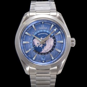 • 미러급 오메가 남성용 씨마스터 1:1수제공정형 220.10.43.22.03.002 아쿠아테라 150M GMT 월드타이머 43미리 오토매틱 Cal. 8938 타입 메탈줄 블루 다이얼 omg20245 Ⅳ