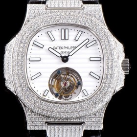 - 화이트 텍스쳐드 & 스켈레톤 다이얼,스틱 인덱스 - 6시방향 투어빌론 디스플레이 |