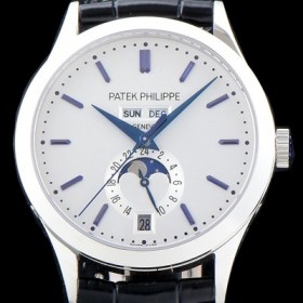 - 화이트 다이얼,블루 스틱 인덱스 - 6시방향 문페이즈 디스플레이,퀵 체인지(Quick Change)기능 - 다이얼의 12시 방향에는 각각 요일과 월 표시나란히 배치 - 6시방향 날짜창 , 퀵 체인지(Quick Change)기능 |