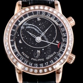 파텍 필립6102 셀리스티얼(Celestial)은 스카차트를 탑재한 그랜드컴플리케이션모델로 파텍의 역사와 전통,기술력과 장인 정신이 집약된 마스터피스이다.태음 주기 과정에서의 달의 몰락뿐만 아니라 별의 움직임을 보여주는 스카이 차트를 통해 북반구의 천체가 펼쳐진다. |