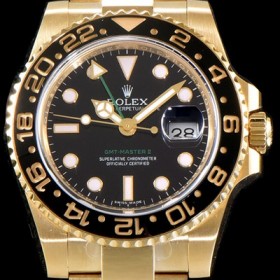 Rolex GMT-MasterII Root Beer Oyster, flat three-piece links Ceramics Bezel 18K Yellow Gold Black Dial Oyster Bracelet Automatic Movement