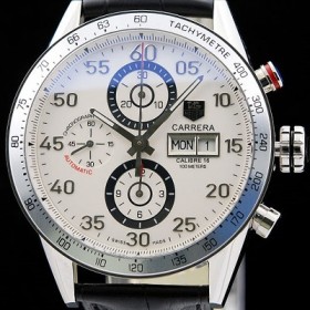 까레라 2008 년 신형제품입니다. 기존 41mm에서 2m 가 더 커진 케이스와 데이트만 디스플레이되던 부분이 데이&데이트 표시 기능으로 업그레이드 되었으며 인덱스도 bar인덱스에서 아라비안 인덱스로 바뀌어 조금 딱딱하고 무겁던 느낌을 벗은 모델입니다. |