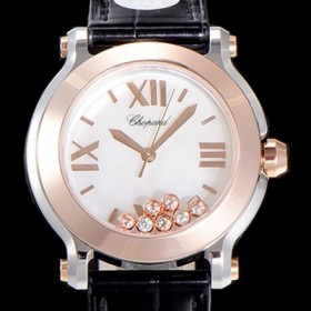 미러급 쇼파드해피스포츠 라운드 쿼츠 로즈골드 투톤-콤비 ETA-955.112 레이디 36미리 가죽줄 화이트다이얼 CHO73679 Ⅳ