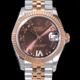 Rolex Date-Just Automatic ETA-2688 31mm Ladies 18K Rose Gold Brown Dial
