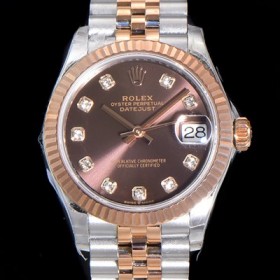Rolex Date-Just Automatic ETA-2688 31mm Ladies 18K Rose Gold Brown Dial