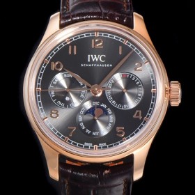 미러급 아이더블유씨 남성용 포르투기즈 퍼페추얼 캘린더 문페이즈 오토매틱 42mm Cal.82650 타입 18K 로즈골드 가죽줄 그레이다이얼 iwc71932 Ⅳ