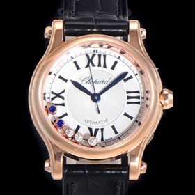 미러급 쇼파드 여성용 해피스포츠 다이아몬드 오토매틱 A2892-2 타입 30mm 금장시계 가죽줄 화이트다이얼 cho70316 Ⅳ