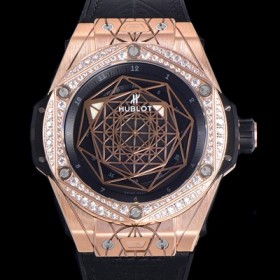 Hublot Mens Big Bang Sang Bleu Black 45mm 18K Rosegold Diamond Bezel Automatic HUB1213 TYPE Black Dial