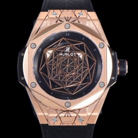 미러급 휴블렛 남성용 빅뱅 쌍 블루 오토매틱 HUB1213타입 45미리 18K 로즈골드 가죽/우레탄 믹스밴드 블랙다이얼 hub64531 Ⅳ