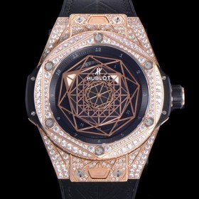 Hublot Mens Big Bang Sang Bleu Black 45mm Mens 18K Rosegold Diamond Case Automatic HUB1213 TYPE Black Dial