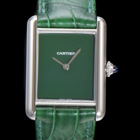 미러급 까르띠에 여성용 탱크 머스트 WSTA0054 로마 인덱스 33.7mm 그린 다이얼 악어가죽줄 쿼츠 무브먼트 CAR00575 Ⅳ