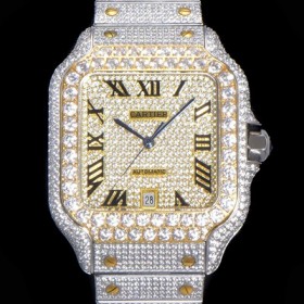 • 미러급 까르띠에 남성용 산토스 쥬얼 다이아몬드 셋팅 베젤 40mm 큐빅/보석 다이얼 오토매틱 무브먼트 CAR40437 Ⅳ