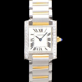 Cartier Women's Tank "Française Watch!!" Diamond S model, yellow gold steel silver finish grained dial Swiss quartz movement