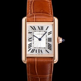 미러급 까르띠에 여성용 신상 탱크 WGTA0011 실버 다이얼 33.7mm 로즈골드 악어가죽 쿼츠 무브먼트 car69355 Ⅳ