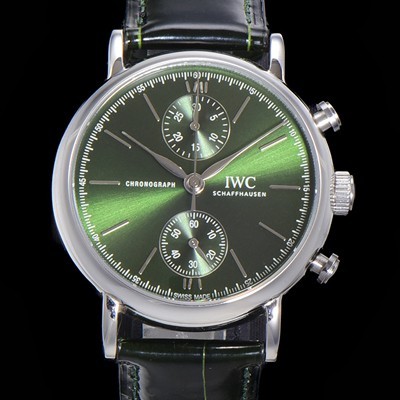 IW C Men's Portofino Green Dial 39mm Crocodile Leather 7750 Automatic Movement