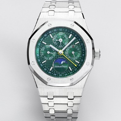 - 그린 3D와플 다이얼,실버 스틱 인덱스  - 6시 방향 문페이즈  - 업그레이드된 야광기능(핸즈 및 인덱스)