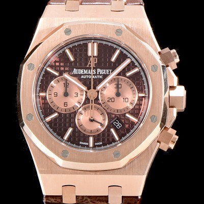 Audemars Piguet Royal Oak Chronograph 18k Rose Gold Brown Waffle Dial Automatic Movement