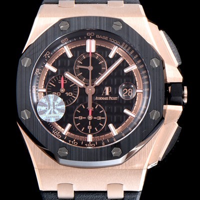 Audemars Piguet Royal Oak Offshore New Update ! 18k Rose Gold Black ceramic bezel Chronograph Black Waffle Dial High Quilty Automatic Movement