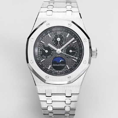 - 다크 그레이 3D와플 다이얼,실버 스틱 인덱스 - 6시 방향 문페이즈 - 업그레이드된 야광기능(핸즈 및 인덱스)
