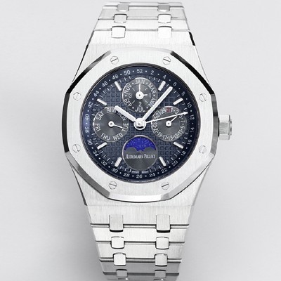 - 다크 블루 3D와플 다이얼,실버 스틱 인덱스 - 6시 방향 문페이즈 - 업그레이드된 야광기능(핸즈 및 인덱스)