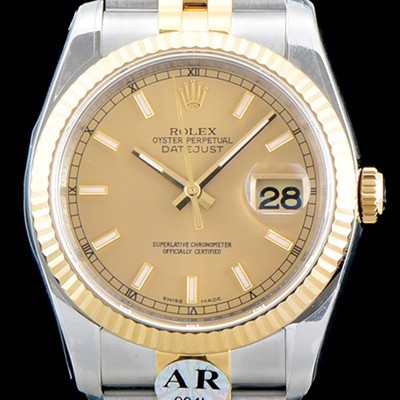 Rolex Men's Date 116233 Luxurious 18K Yellow Gold Two-Tone Combination Champagne Color Dial Automatic Movement