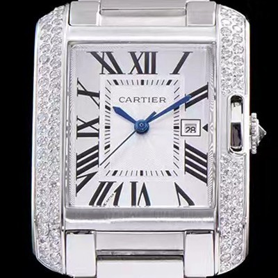 미러급 까르띠에 남성용 탱크 WT100028 앙글레즈 워치!! 브릴리언트 컷 다이아몬드 베젤 실버 마감 래커 플렝케 다이얼 쿼츠 무브먼트 CAR0014 Ⅳ