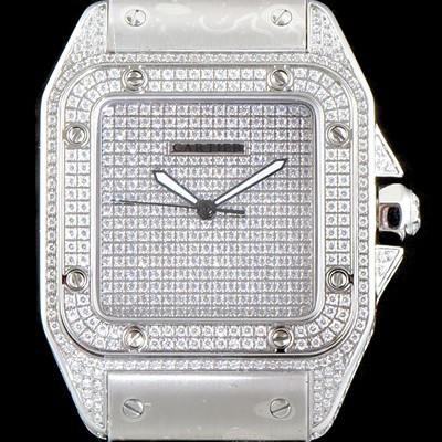 미러급 까르띠에 남성용 산토스 100 베스트 에디션 W20073X8 미듐 모델 화이트 골드 풀다이아몬드 셋팅 오토매틱 무브먼트 CAR4010 Ⅳ