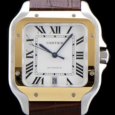 • 미러급 까르띠에 남성용 산토스 드 까르띠 W2SA0006 "18K 옐로우골드 베젤" 라지 모델-데이트 정품 동일 사이즈 실버 마감 오팔린 다이얼 오토매틱 무브먼트 CAR4001 Ⅳ
