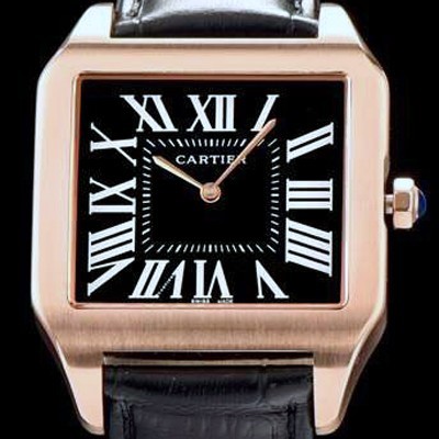 Cartier Free Santos Series Automatic Movment Gold Bezel Black Dial