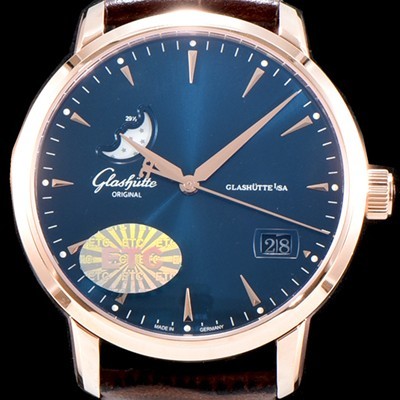 • 미러급 글라슈테 오리지날 남성용 세나토 "고급스러운 18K 로즈골드 아플리케 인덱스" UP!! 1-36-04-05-02-02 "엑설런스 파노라마 데이트&문페이즈" 네이비 다이얼 오토매틱 무브먼트 GLA4202 Ⅳ (+0원)