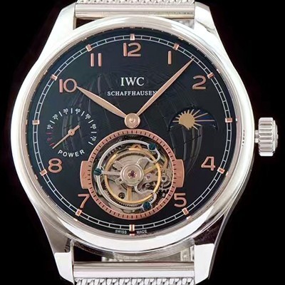 IWC Portuguese Tourbillon Power Reserve Moonphase Black Dial on SS Mesh Bracelet iwc0231