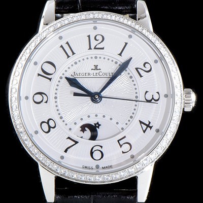 Jaeger Lecoultre Rendez-Vous Night & Day Ladies Watch Medium Diamond Set Moonphase White Guilloche Dial Automatic Movement
