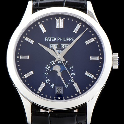 - 네이비 다이얼,바게트 컷 다이아몬드 인덱스 셋팅 - 1:1수공 맞물림 형식의 최상급 쥬얼셋팅 - 6시방향 문페이즈 디스플레이,퀵 체인지(Quick Change)기능 - 다이얼의 12시 방향에는 각각 요일과 월 표시나란히 배치 - 6시방향 날짜창 , 퀵 체인지(Quick Change)기능 |