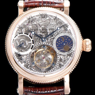 - 실버 스켈레톤 다이얼 - 3시방향 문페이즈,6시방향 투어빌론 |