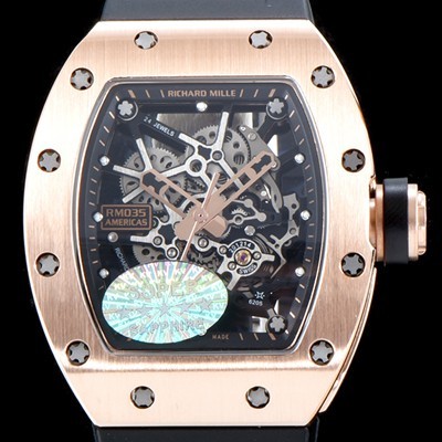 • 미러급 리차드밀레 남성용 리차드밀 RM035 아메리카즈!! 1:1 수공 맞물림 형식의 쥬얼세팅 고급스러운 18K 로즈골드 스켈레톤 다이얼 오토매틱 무브먼트 RIC0450 Ⅳ