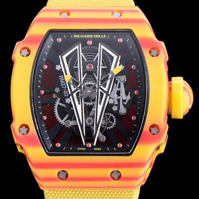 • 미러급 리차드밀레 남성용 RM27-03 투르비용 라파엘 나달 쿼츠 TPT 소재 스켈레톤 다이얼 오스트리아 산 신형 옐로 우레탄러버밴드 오토매틱 무브먼트 RIC0440 Ⅳ