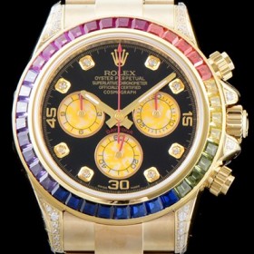 - 다이아몬드와 사파이어가 세팅된 블랙 다이얼 - 최상급쥬얼 1:1수공맞물림 형식으로 셋팅완료 - 크로노그래프(Chronograph) 시간계 , 30분계 , 영구초침(Small Seconds) - 3시 방향에 30분단위 스탑워치서브 다이얼과 6시방향의 영구초침 서브다이얼 - 9시방향의 12시간 단위 스탑원치 크로노 그래프 기능이 장착