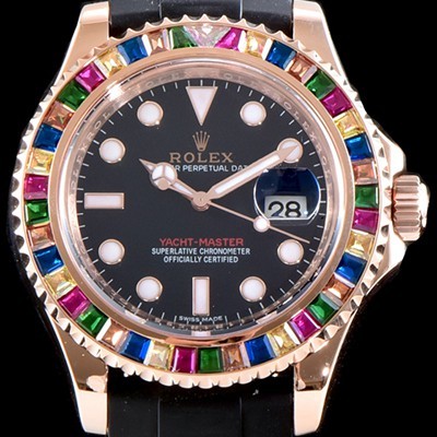Rolex Yacht-Master 40 Rainbow baguette-cut Diamond Bezel Black Dial Oyster flex SWISS ETA 2824-2 Automatic Movement