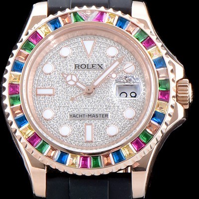 Rolex Oyster Perpetual Yacht-Master Diamond Paved Dial Rainbow baguette-cut Diamond Bezel SWISS ETA 2836 A2 Automatic Movement