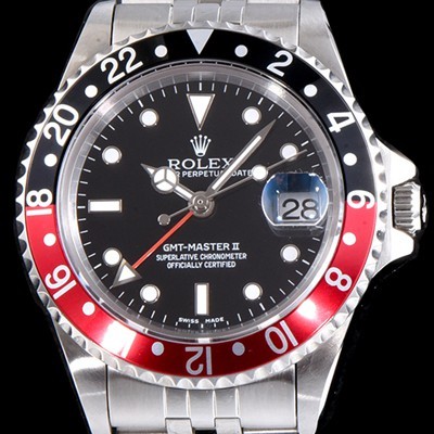 제품특징 GMT-마스터II GMT-MasterII는 12시간을 기준으로 하는 일반적인 시,분,초 외에도 24시간용 시침 및 24시간이 음각으로 표시된 양방향 회전 베젤을 장착하고 있습니다.눈에 띄는 컬러로 표시된 24시간용 시침이 가리키는 베젤의 눈금을 통해 제 1시간대의"본국 시각"을 확인할 수 있습니다.여행지 현지 시각은 와인딩 크라운의 독창적인 메커니즘을 통해 매우 간편하게 조정됩니다.시침은 분침과 초침에 영향을 주지 않고 독립적으로 움직이기 때문에 정밀한 타임키핑에 영향을 미치지 않고 새로운 시간대를 적용할 수 있습니다.